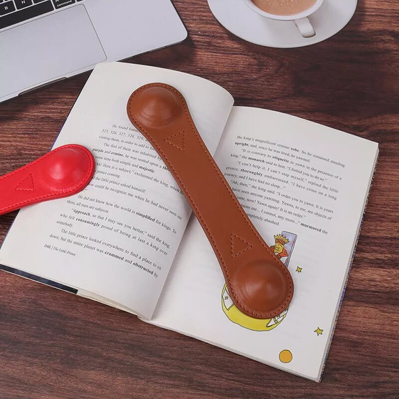 The PU leather book weight page holder is an innovative reading accessory designed to enhance your reading experience. This versatile tool combines the functionality of a bookmark, page holder, and weight, making it an essential companion for book lovers.